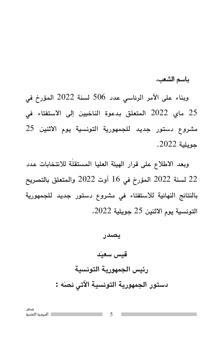 دستور الجمهورية التونسية 2022